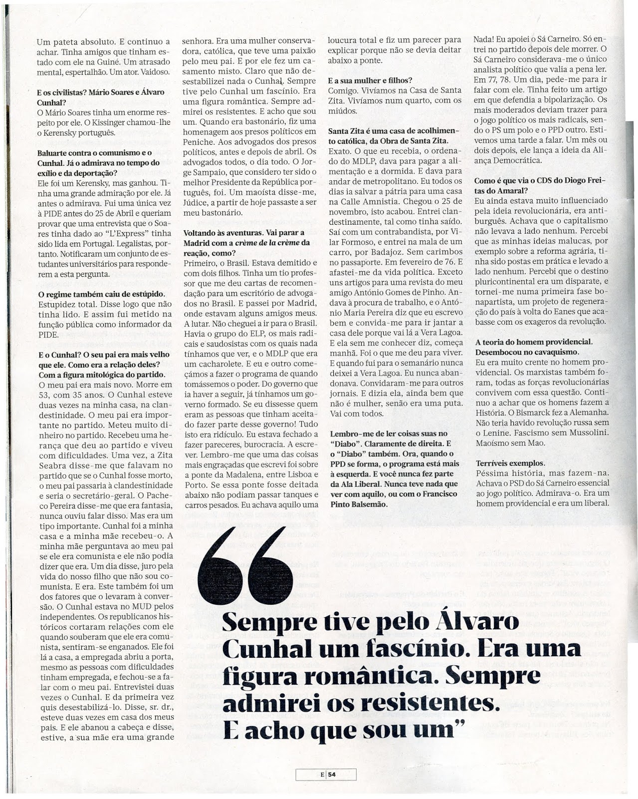 O PSD, diz, nunca teve pensamento político. O PCP, que ele admira, sim. Não se percebe se ele nunca ouviu falar dos crimes dos regimes soviéticos que o Cunhal tanto admirava e tentou trazer para cá.