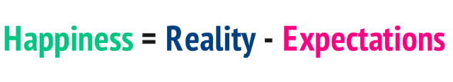 ... when the reality of someone’s life is better than they had expected, they’re happy. When reality turns out to be worse than the expectations, they’re unhappy.