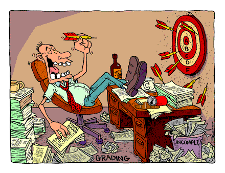 Todos os anos complicam mais a correção dos exames nacionais. Agora é preciso decompôr na grelha e na folha de resposta do aluno a classificação em cotações de níveis de desempenho... qualquer dia é necessário fazermos gravação dos pensamentos e raciocínios que elaboramos enquanto classificamos os testes de exame não vá termos pensado alguma coisa proibida pelo deus IAVÉ ou, termos pensado, sequer... ou temos que ver os exames com escolta policial para verem quantas vezes nos levantamos para descansar a cabeça ou outra coisa qualquer do género que possa ser pretexto para acção judicial.