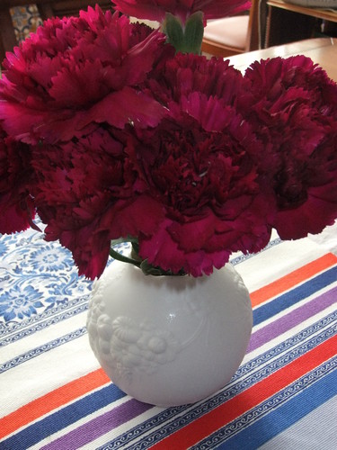 Fui à rua fazer umas cenas e dei de caras com uns molhos de cravos numa florista. Um deles, este que aqui se vê, de um tom cerise, bonitíssimo. Como amanhã é o dia dos cravos e, ainda estava com a música na cabeça -ain't no mountain high enough..., isto é, não há montanha suficientemente alta que me impeça de alcançar-, achei que as flores a acompanhavam na perfeição, tanto no que diz respeito ao meu estado de espírito motivado como ao dia de amanhã :)