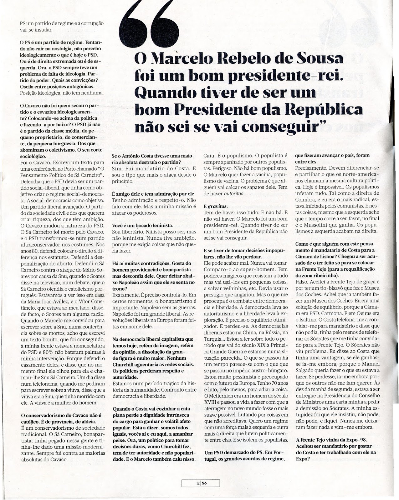 O que fica patente é, sobretudo, a falta de qualidade dos seus juízos sobre os acontecimentos e as pessoas e, pela maneira como fala dos amigos, ficamos com a ideia que os outros do seu círculo, o Barroso, o Sampaio (que ele diz ter sido o melhor Presidente, embora não diga porquê...) e outros são mais ou menos como ele. Leram muita coisa daqui e dali mas não conseguiram transformar nada do que leram em sabedoria.